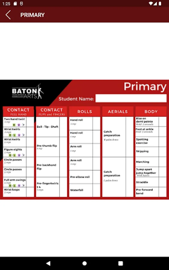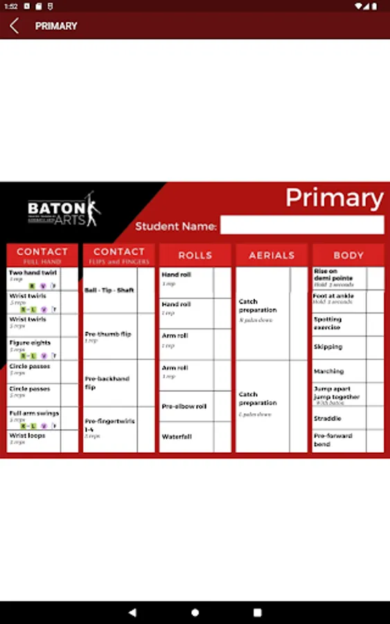 Everything you need to run amazing Baton Twirling classes. This app features the entire Baton Arts Syllabus, over 350 videos, the Baton Arts Manual, Lesson plans, tutorials, teacher tips, teacher tools, coloring pages, progress cards, and more!