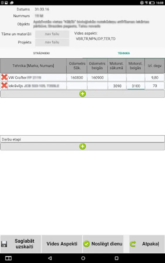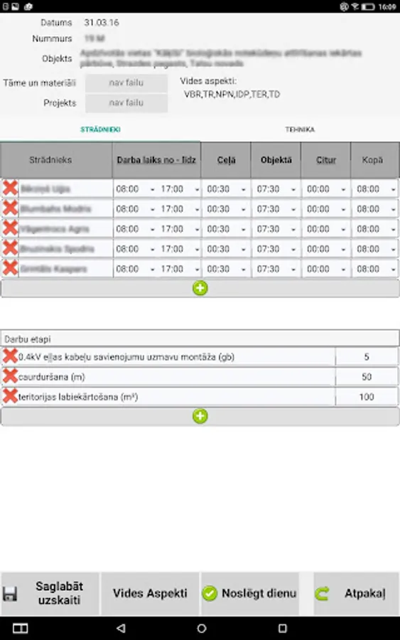 With this system you can see the foreman Kata day been granted to the workers themselves and tehinkas lists and information about the object - the name, duration, environmental aspects, and estimates materials.