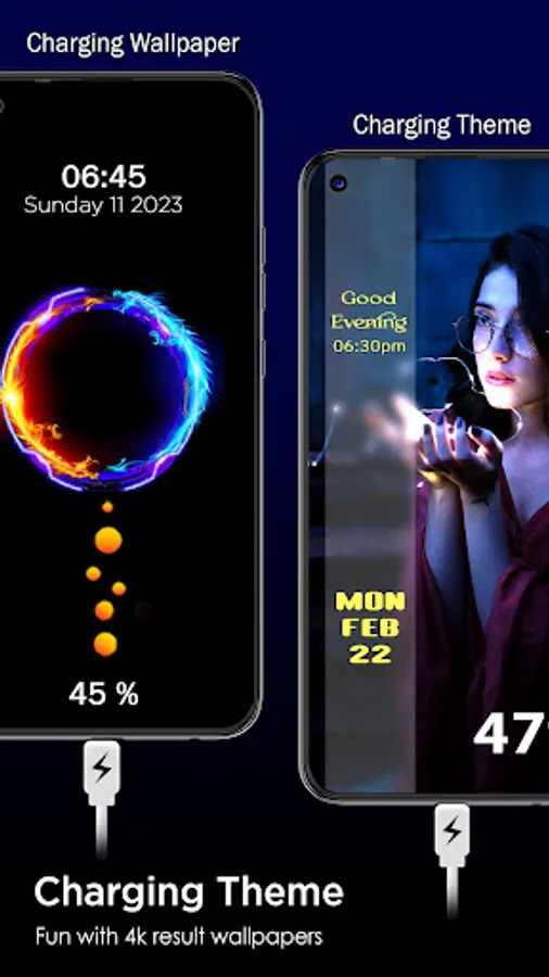 Easy to customize or set attractive charging animations with default charging screen. Rounded, Cartoon and Shape Animations available with custom themes.