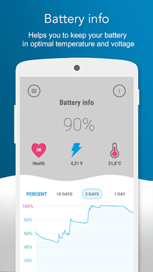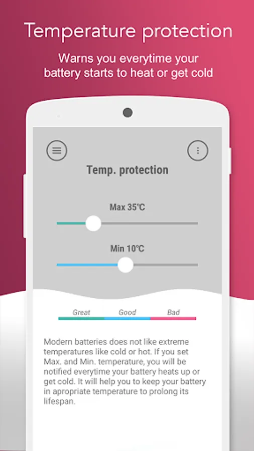app notifies you when your device starts to heat up or get cold to extend your battery