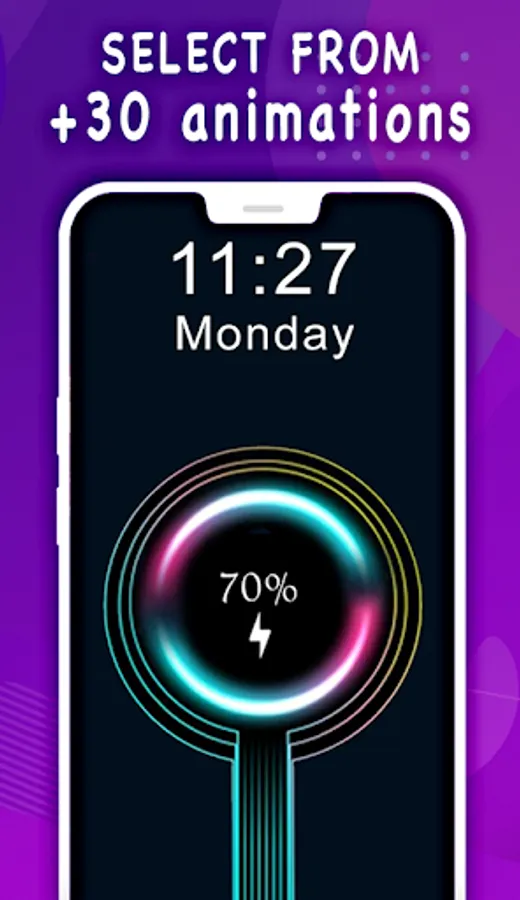 Use multiple color charging animation themes and live battery animations for your phone screen to make it look beautiful. One of the kind animation app in which, you can select your favorite battery animation and set it on your phone screen to make your screen look elegant. Choose from multiple battery animations and neon effect colors from app settings. These animations make your screen look awesome when you plug in your charger.