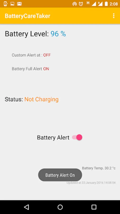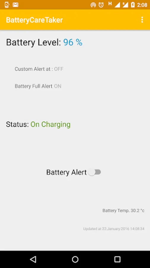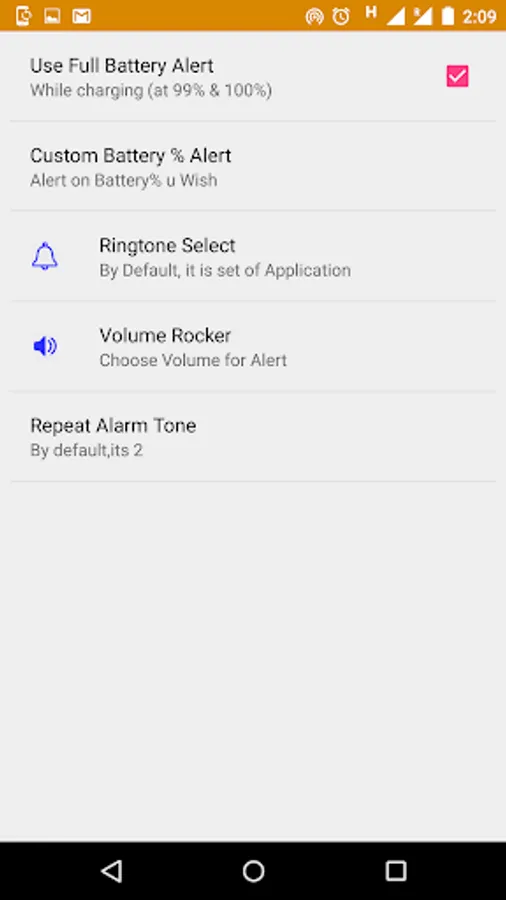 Very light - weight Application to notify you with alarm when battery tends to Fully Charge.