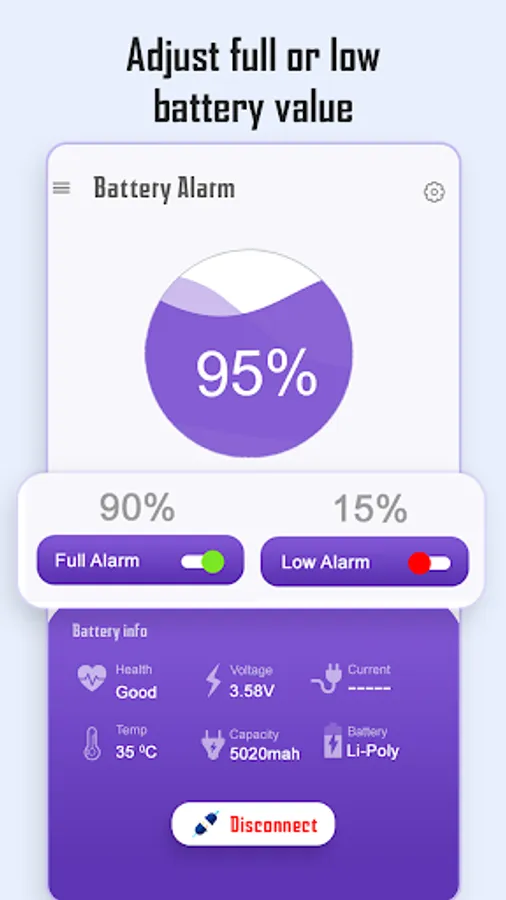 9. Users can set an alarm for 100% battery charged or can set it to any maximum value.