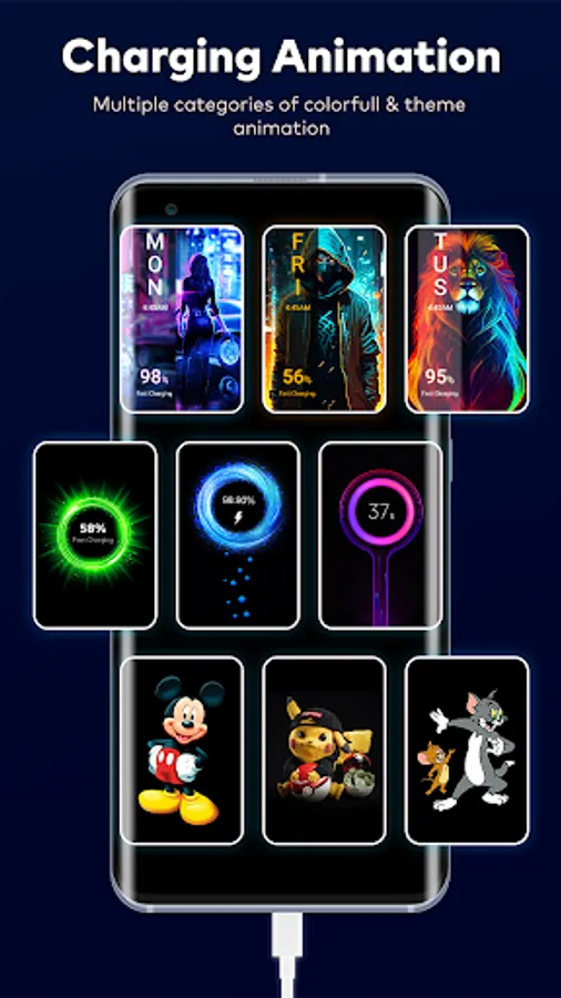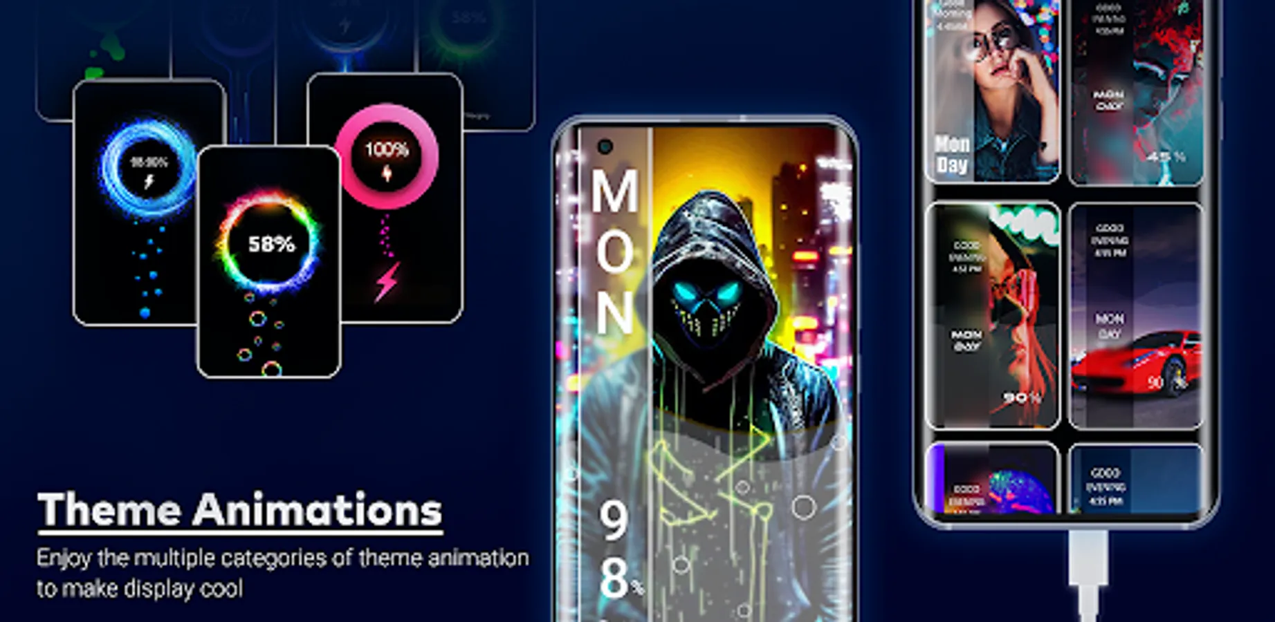 Battery Charging Wallpaper - Charging Theme Style app is custom photo Battery charging screen that helps you to avoid to battery charging troubles, you need to take care of your mobile battery with battery animation live wallpaper lasts as long as possible. What you can be done with this lock screen battery animation process? In fact, everything is very quick with battery charging screen, disconnect your phone from the charge on exact time and put battery charging on fast charge on time. Here you go and have battery animation & charging themes on display.