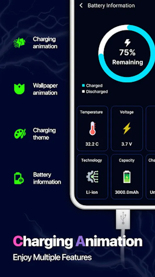 Offering a variety of charging animation effects, Battery Charging Animation is compatible with all Android devices. Forget checking your battery percentage repeatedly โ the lock screen charging feature displays the remaining battery life. Experience a new level of charging customization with the Battery Animation.