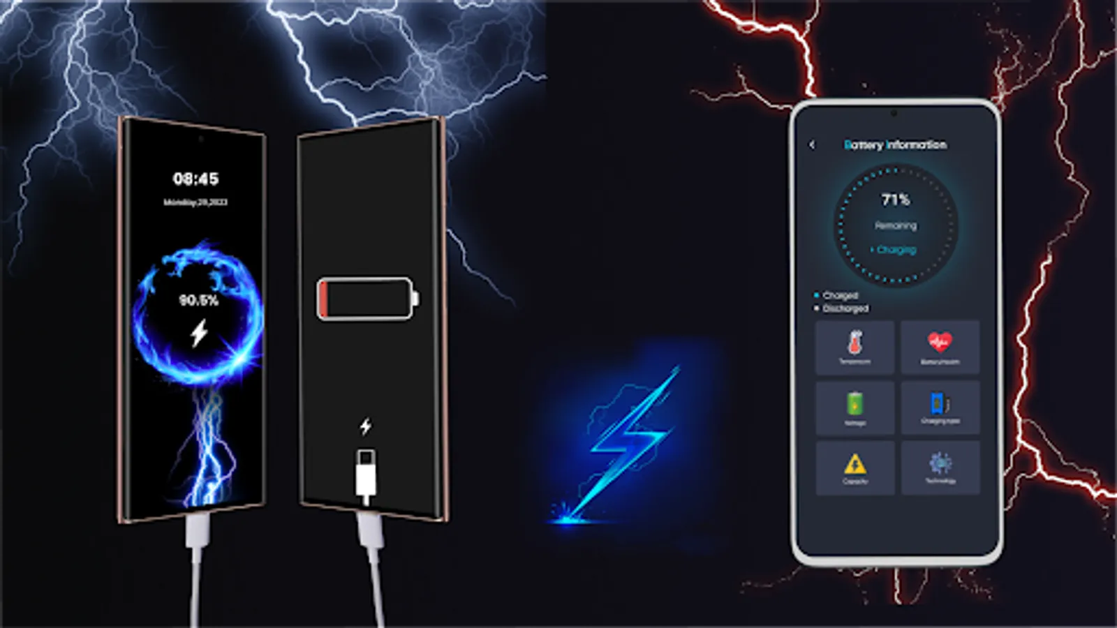 Stay informed about your device's battery health and status. Battery Charging Animation - Ultra Battery Charging app provides comprehensive battery information, including the current charge level, estimated charging time, and battery temperature. Keep track of your battery's performance and optimize your charging habits to extend its lifespan with Battery Animation - Charge Animation. Make informed decisions to ensure your device remains powered throughout the day.