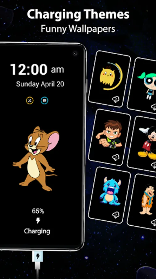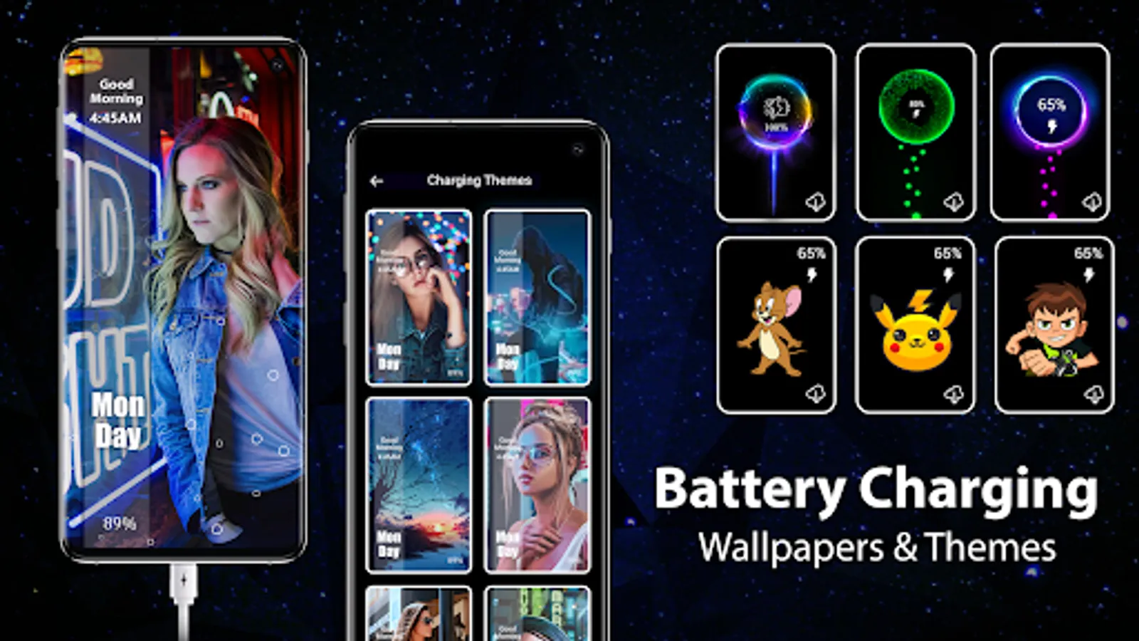 The Battery Charging Animation app provides multiple charging wallpapers and themes, with the option to set the theme from your gallery. Choose a picture or animation that you like and use it as the theme for your device. The charging animation app offers different designs to keep you entertained instead of seeing the same wallpaper while your device is charging.