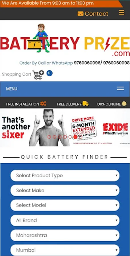 BatteryPrize is always providing best prices with fast, free Home & office Delivery and Installation within 1-2 Hours after ordering the battery.