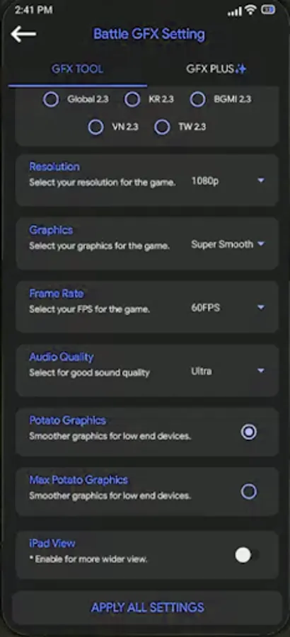 Battle GFX Tool Helps you to completely tailor your game graphics for both stunning visuals and seamless gameplay and elevate your gaming performance with Battle GFX Tool - PUB & BGM, the ultimate application for optimizing your gaming experience.