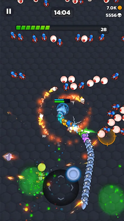 You need to choose your abilities wisely to find the best tactics for each situation. Crowds of monsters led by zombies will try to stop you! Upgrade your snake to the maximum to win!
