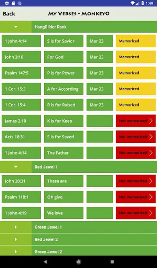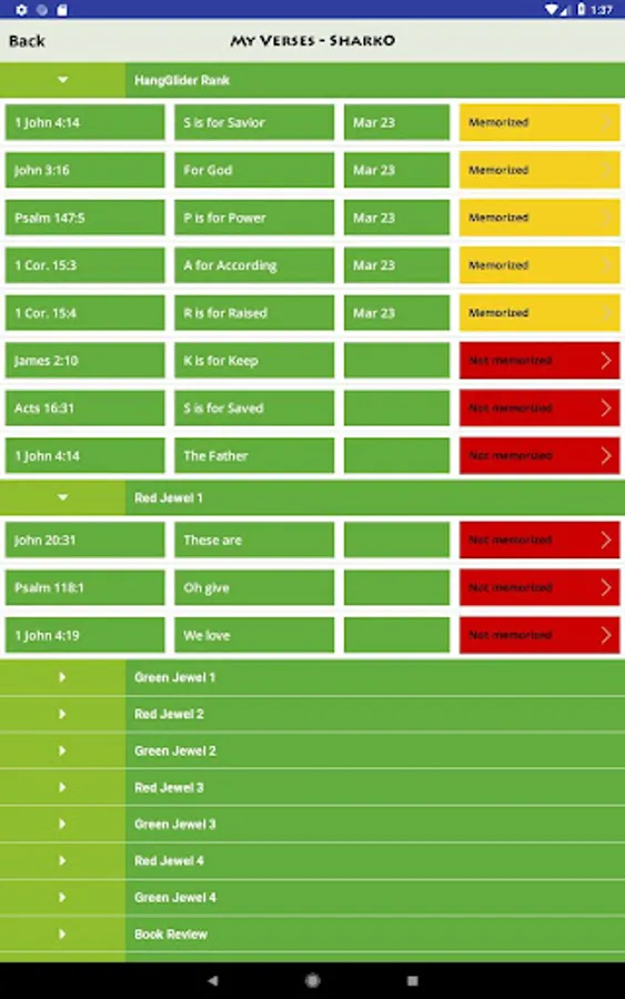 - Parents can easily track a child’s progress in the app to see whether a child has memorized or reviewed assigned verses