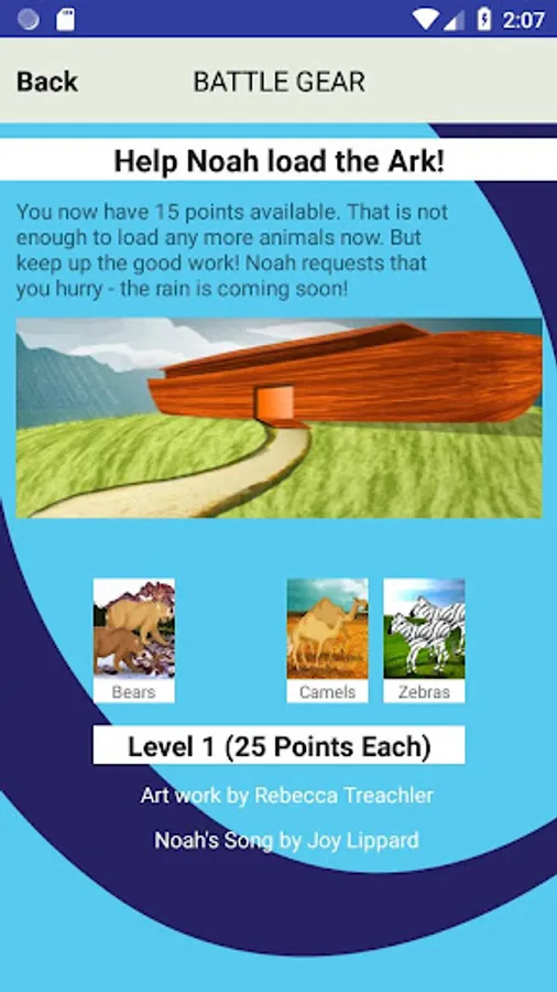 All songs © Awana Clubs International. Sparks images © 2008-2010 Awana Clubs International. The Awana Theme Song, Sparks songs, and Sparks images are used by permission of Awana Clubs International. Battle Gear, LLC is solely responsible for the software application. Battle Gear, LLC is not endorsed by, or affiliated with, Awana Clubs International.