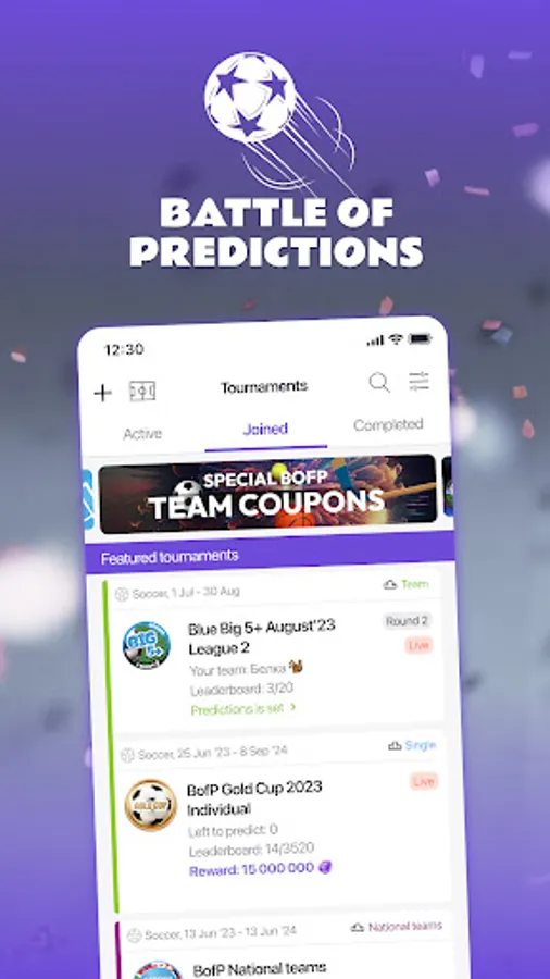 Earn stats, score real goals and three-pointers, earn game salary and become the best Battle of Predictions athlete.