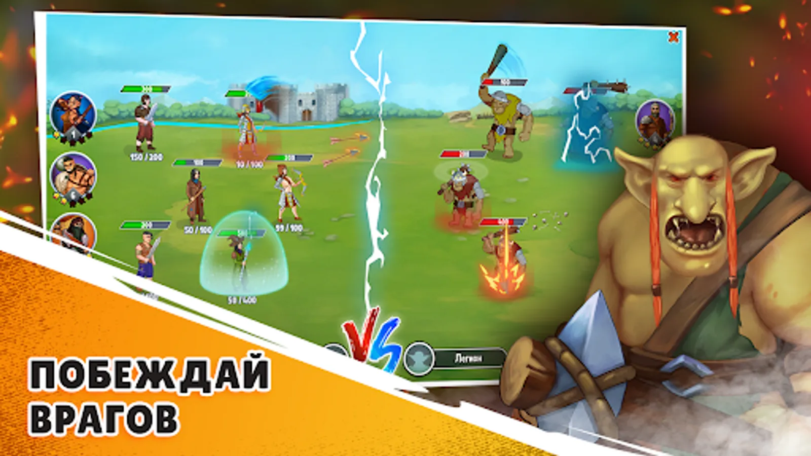In addition, Battle Prodigies is also an RPG that contains all the favorite RPG features: different ways to improve your heroes, the ability to control an army, use enchanted weapons, magic, armor and artifacts.