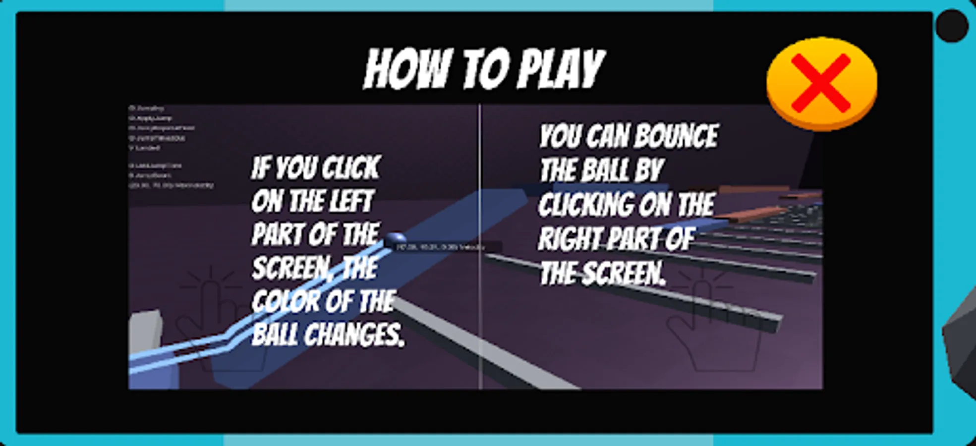 Jumping Ball! Click on the screen to bounce the ball and pass the challenging tracks. A game that you will enjoy with easy controls. You have to make the ball color with the left side of the screen and jump with the right side. lets duble click!!