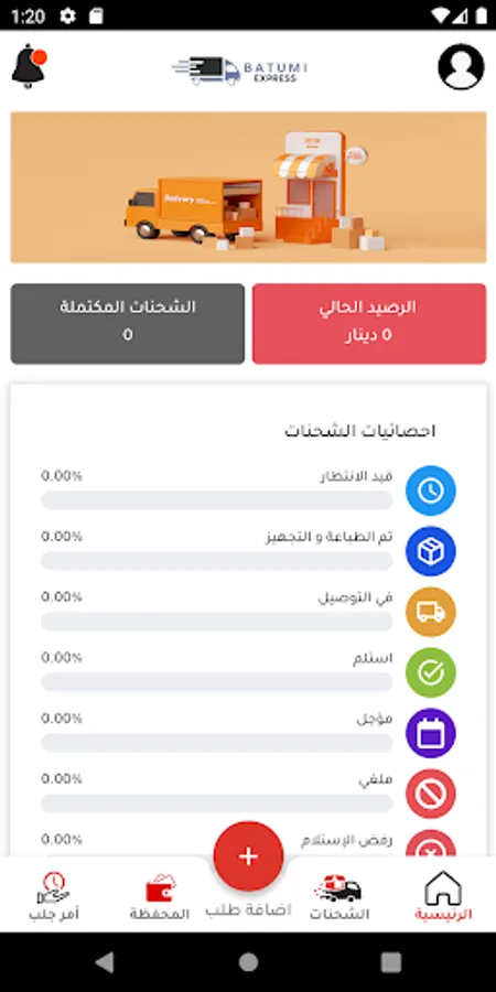 تطبيق خاص للعميل لمتابعة الشحنات و المعلومات المالية و إضافة الشحنات بكل سهولة و يسر