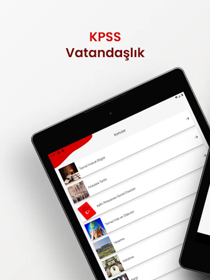 - Vatandaşlık Rehberi (KPSS Vatandaşlık) uygulamasında sizin için özenle hazırlanmış sürekli artan ve yenilenen bilgi kartları ve soruları bulunmaktadır.