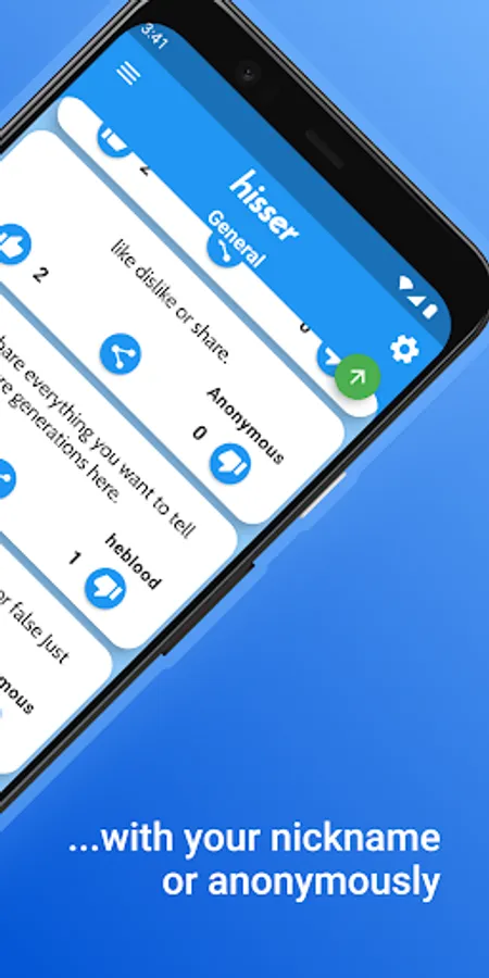 Hisser allows people to communicate with each other anonymously or by nickname. You can share, read or just lurk without limits.
