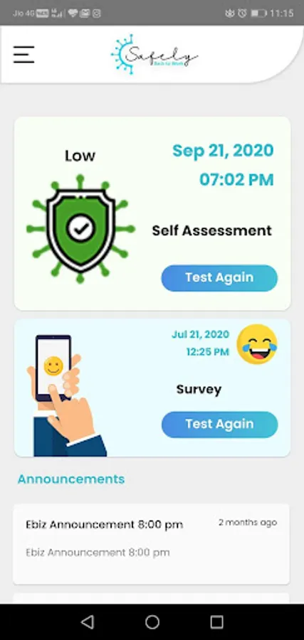 Safely Back to Work is an app to assist Businesses get back to normal as they reopen their offices. It can be used as a platform to publish their guidelines at work place and also a tool to take quick assessments regarding any symptoms they see according to CDC guidelines. An option to post office wide surveys is also provided. The announcements feature can be used to keep the employees updated on office policies, timings etc.