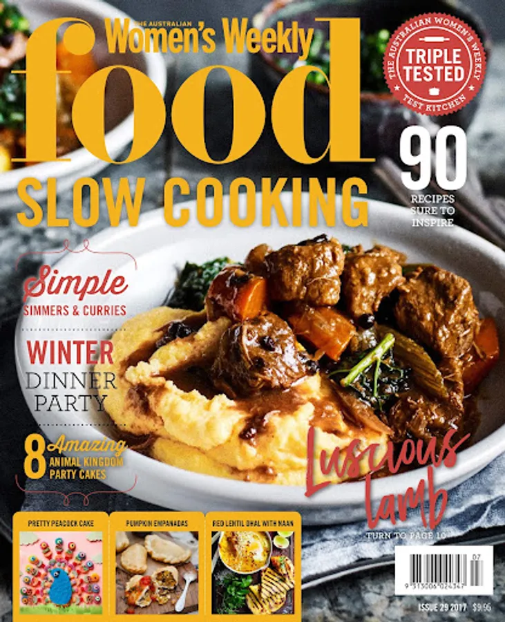 Cooking with The Australian Women’s Weekly magazine is all about food; how to create, make, bake and cook it. All the recipes have been developed and triple-tested in the famous Women’s Weekly Test Kitchen. With masses of tips, hints and useful ‘how-to’ pictures and videos, FOOD helps readers to cook with confidence.