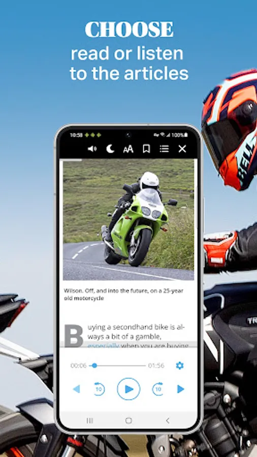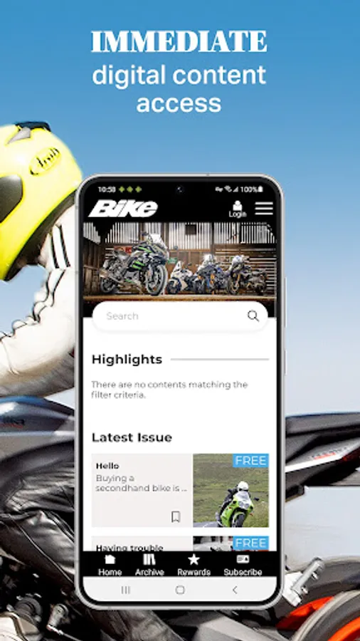 The official app of Britain's best-selling motorcycle magazine. With intelligent writing, stunning photography and exclusive content, Bike takes you on a motorcycling journey celebrating everything on two wheels. From in-depth comparisons and reviews of new and used bikes, to inspiration for your next biking adventure, behind-the-scenes race access and the most fascinating characters, Bike magazine is your definitive guide to all things motorcycling.