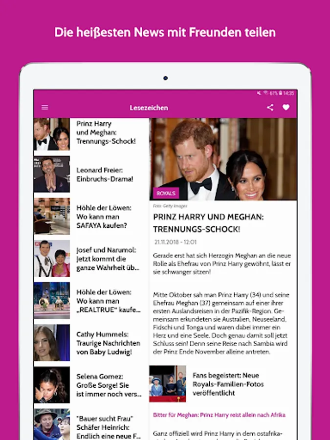Whether traveling, at home on the couch or while chilling with friends - with the InTouch App you have the most exciting tabloid topics always with you! Thanks anytime hourly time push function You know when red-hot celebrity news before everyone else know!