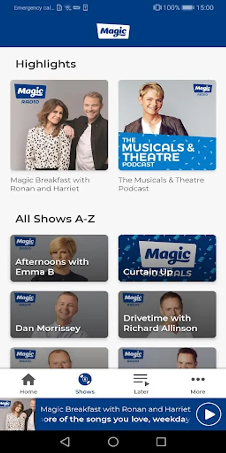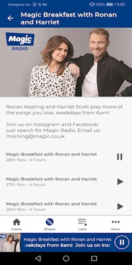 You can now listen live and on-demand to all your favourite shows, podcasts and playlists in one place. Magic Radio shows include Magic Breakfast with Ronan Keating and Harriet Scott & Weekend Breakfast with Tom Price.