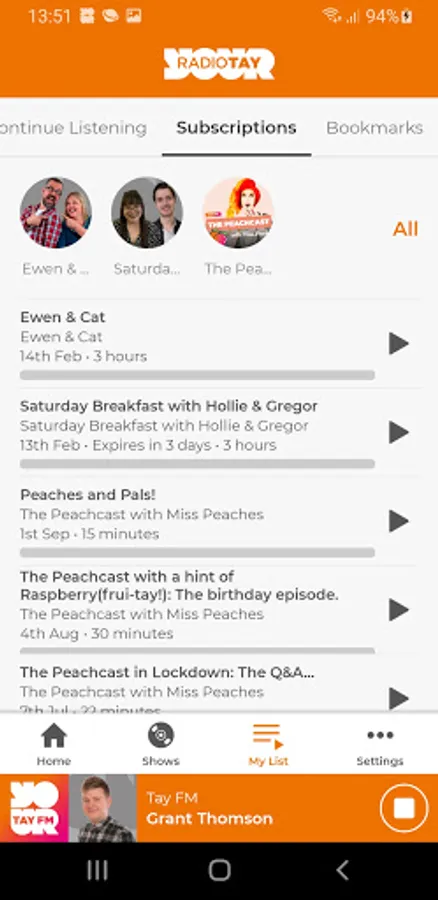 • Listen to your favourite Tay FM and Tay 2 shows on-demand.