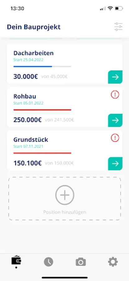 1. Behalte immer dein BUDGET und alle KOSTEN im Blick – Excellisten sind ab heute nicht mehr notwendig. Du kannst für jedes einzelne Gewerk eine Kostenposition anlegen.
