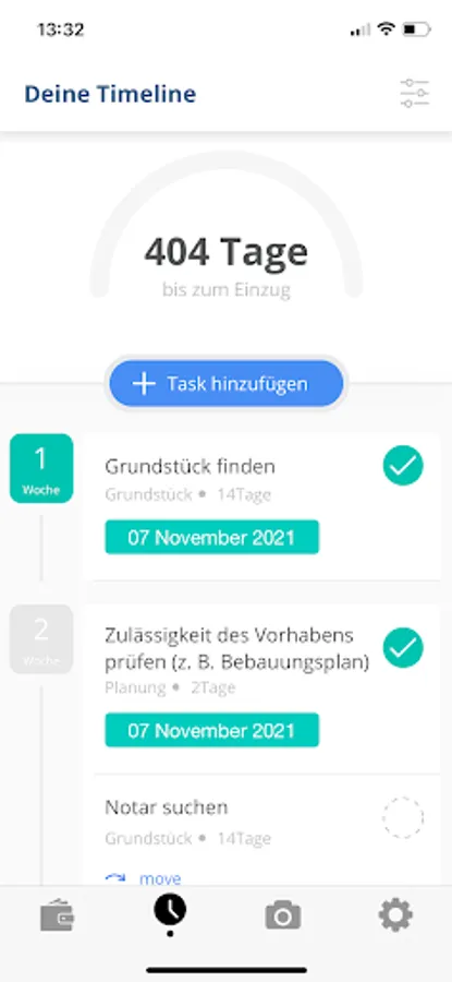 2. Behalte immer alle TERMINE im Blick. Wir haben dir die wichtigsten Schritte in einem Terminplan zusammengestellt und du kannst auswählen, welche davon auf dein Bauprojekt zutreffen. Deine individuellen Termine kannst du manuell hinzufügen.