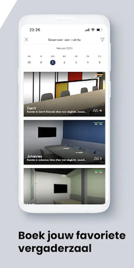 + Eenvoudige tool om een ruimte te reserveren, deelnemers uit te nodigen en toegang tot het gebouw te verkrijgen.