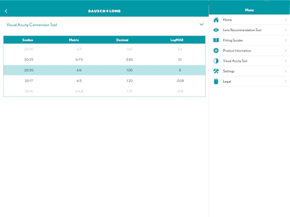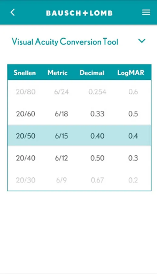 • Visual Acuity Conversion Tool - Need to convert Snellen to metric, or decimal to LogMAR? Use this handy tool to record accurate visual acuity measurements no matter what scale your chart uses.