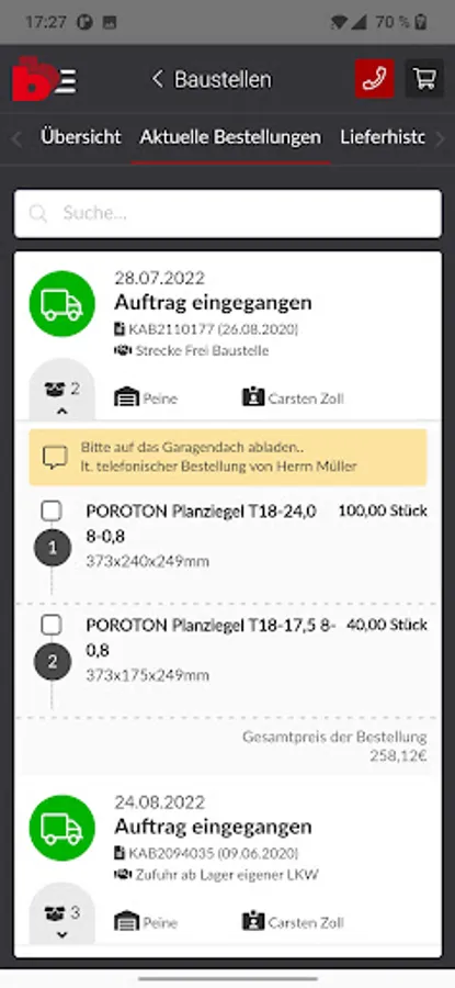 The background of the functions is to facilitate communication with employees of Baustoff Brandes GmbH. By providing information in both directions, many questions do not even arise. If there is still a need for clarification, the app offers you various options for getting in touch with your personal contact person.