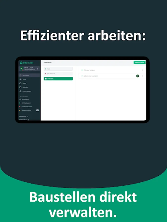With BauTask you can efficiently control your construction processes, keep your team up to date and achieve your project goals.