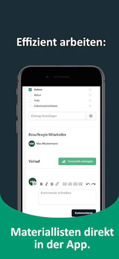 With BauTask, orders can be sent directly to your employees' smartphones.