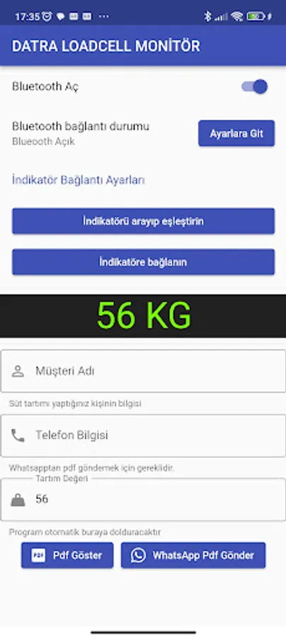 It is an application that allows you to take the kilogram information in your indicator and make partial weighing and send all the information to your customer as pdf.