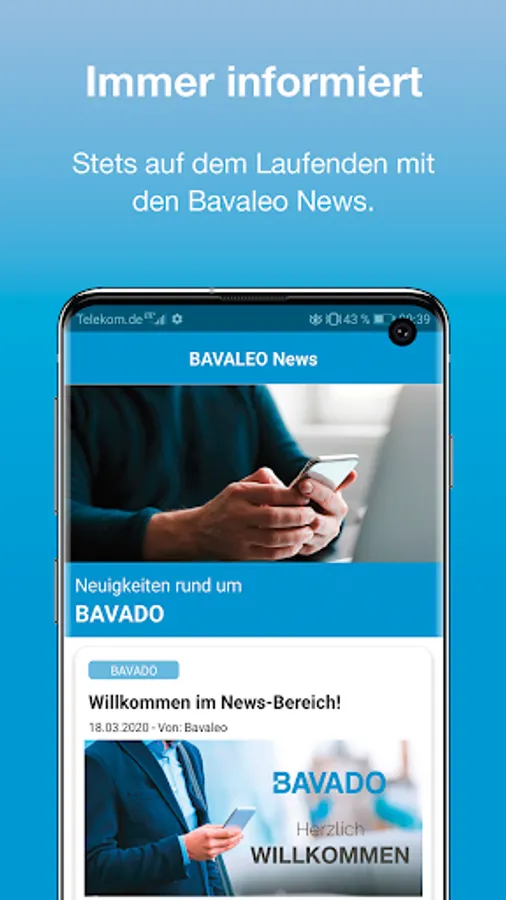 Regardless of whether you want to handle work processes or exchange information - the ever-growing functions of the BAVALEO app make everyday work easier for our employees.