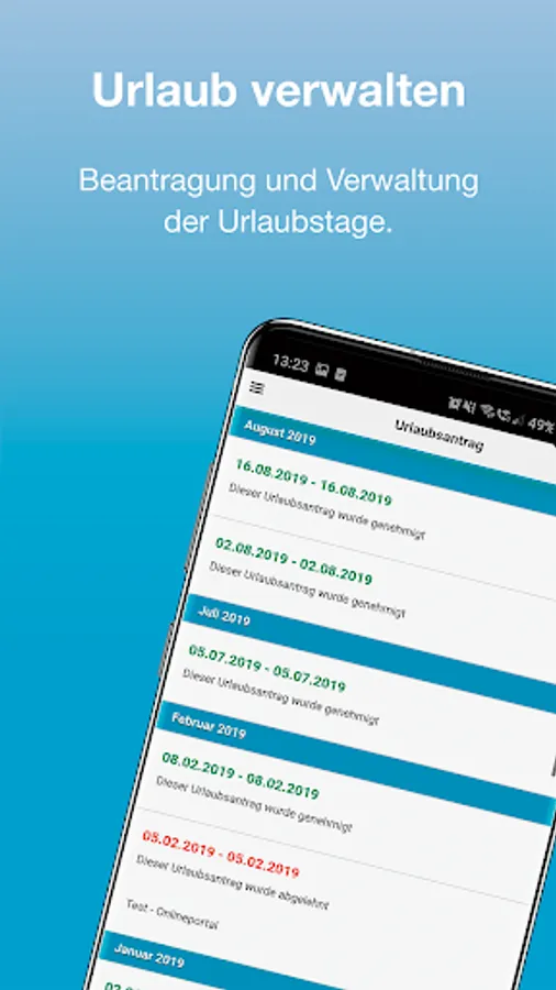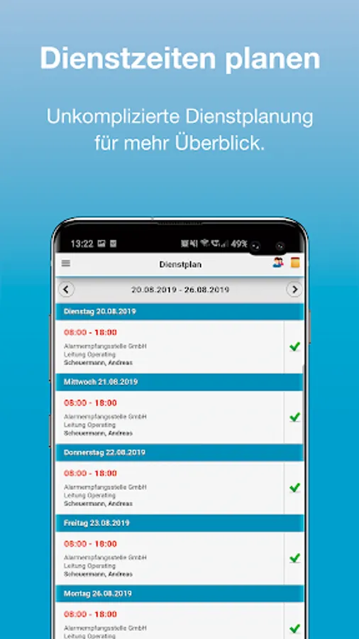 Via the appliste the user can switch between the functions of the app with only one click. In addition to an overview of the contact persons and regional branches, the employees can view their working hours in a mobile and uncomplicated manner, manage the holiday account or call up remuneration statements.