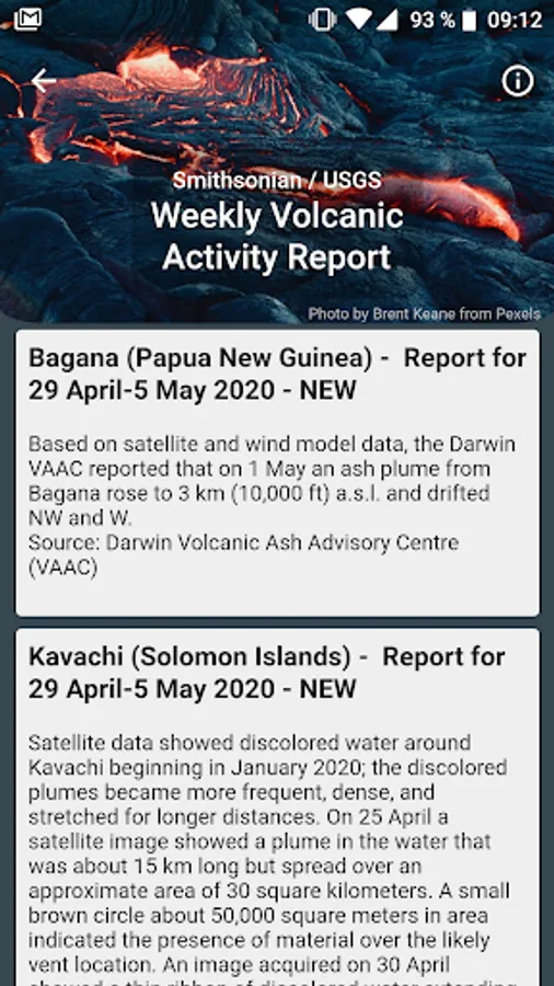 Get weekly updates about currently active volcanoes.