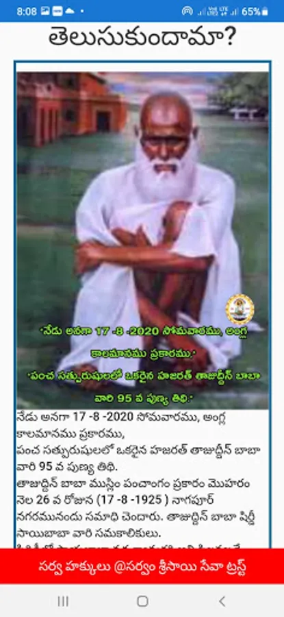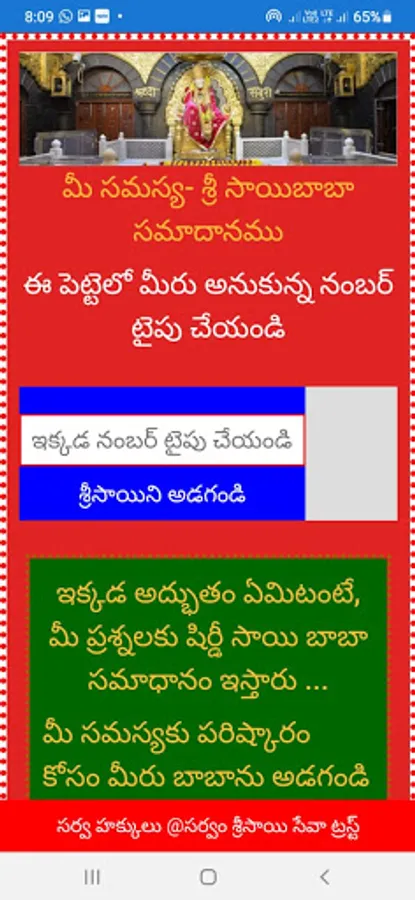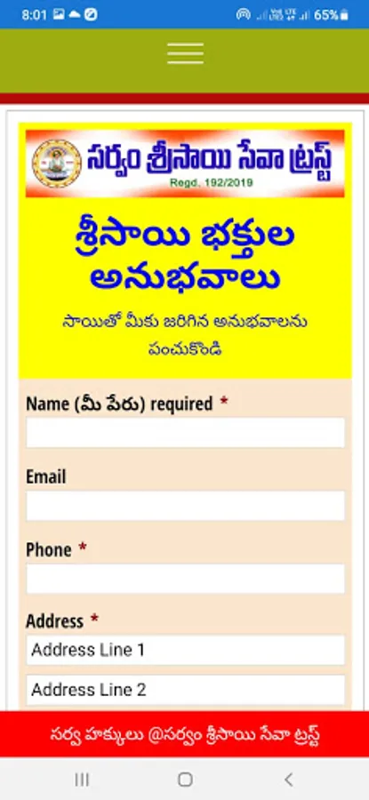 Sarvam Sri sai Seva Trust, Vizag, is the authorized body to control and manage the day-to-day activities at the Sarvam Sri sai Seva . It also provides various facilities like Accommodation, Meals (Free), refreshments, and lot more. The