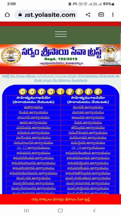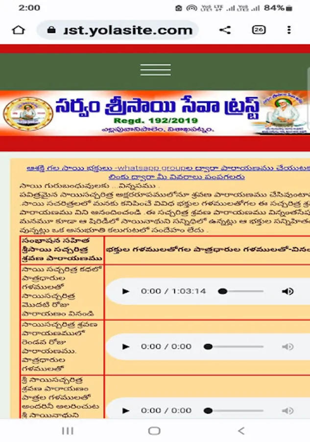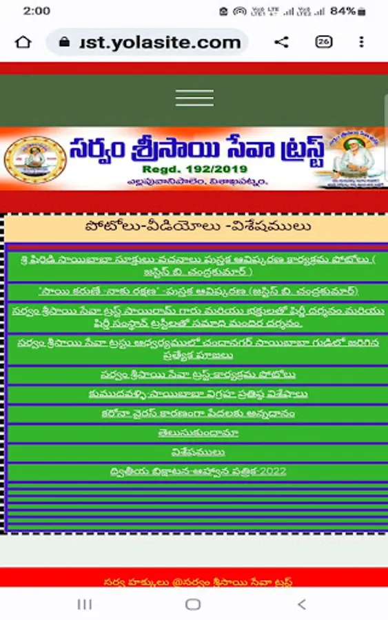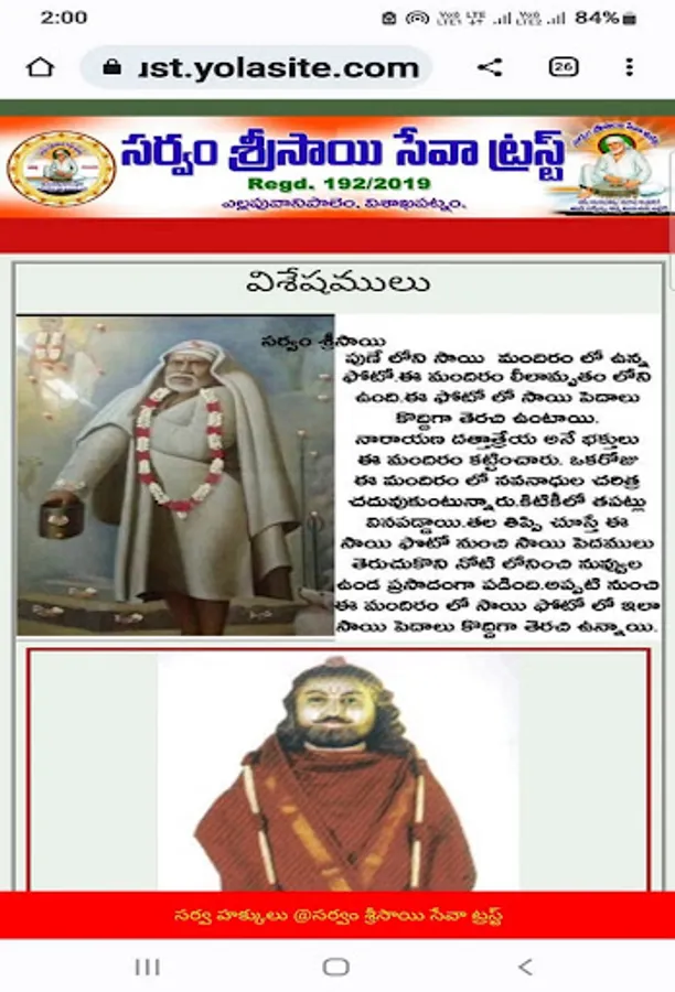 Sarvam Sri sai Seva Trust, Vizag, is the authorized body to control and manage the day-to-day activities at the Sarvam Sri sai Seva . It also provides various facilities like Accommodation, Meals (Free), refreshments, and lot more. The