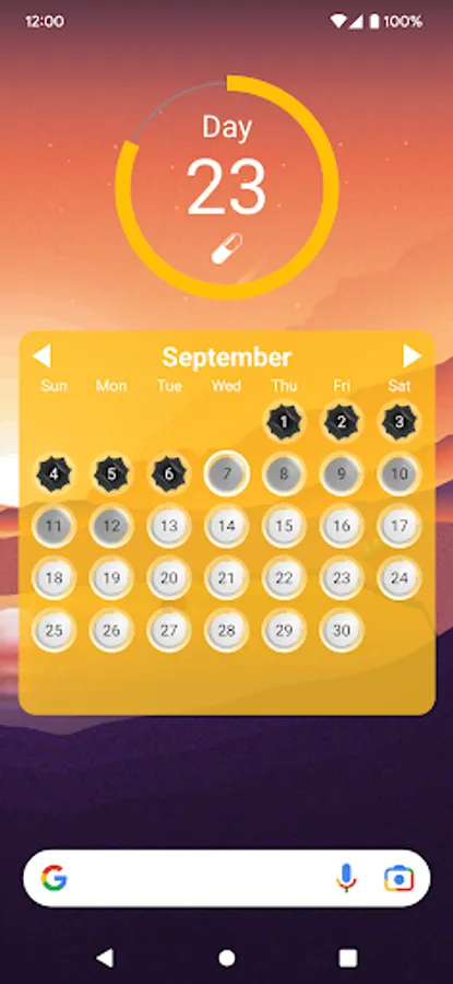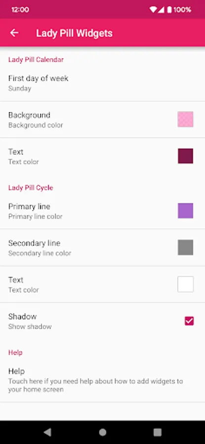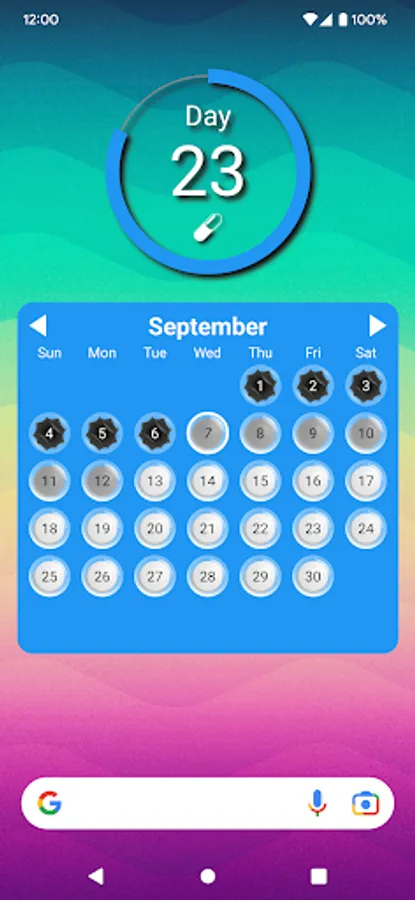 You can customize the colors of these widgets to integrate them into your mobile device home screen. Widgets also are shortcuts to "Lady Pill Reminder".
