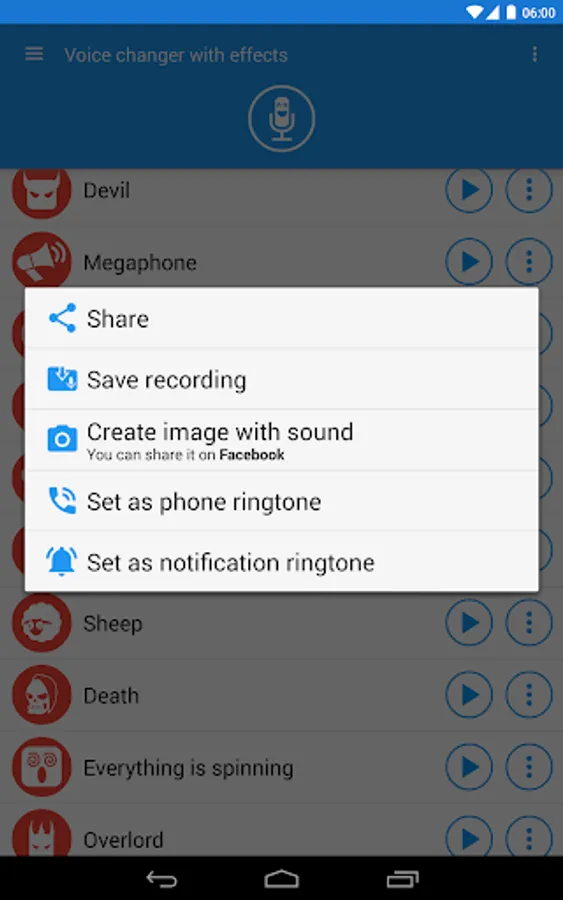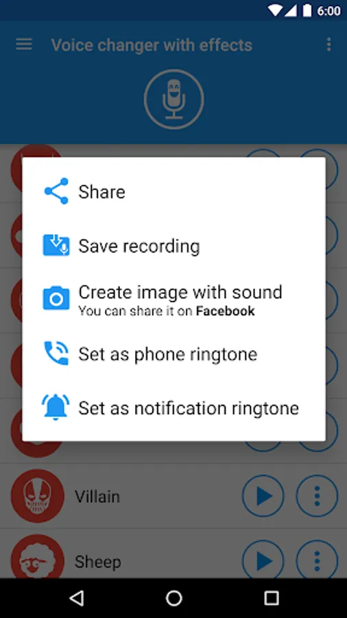 Record your voice, apply effects, and share them with your friends.