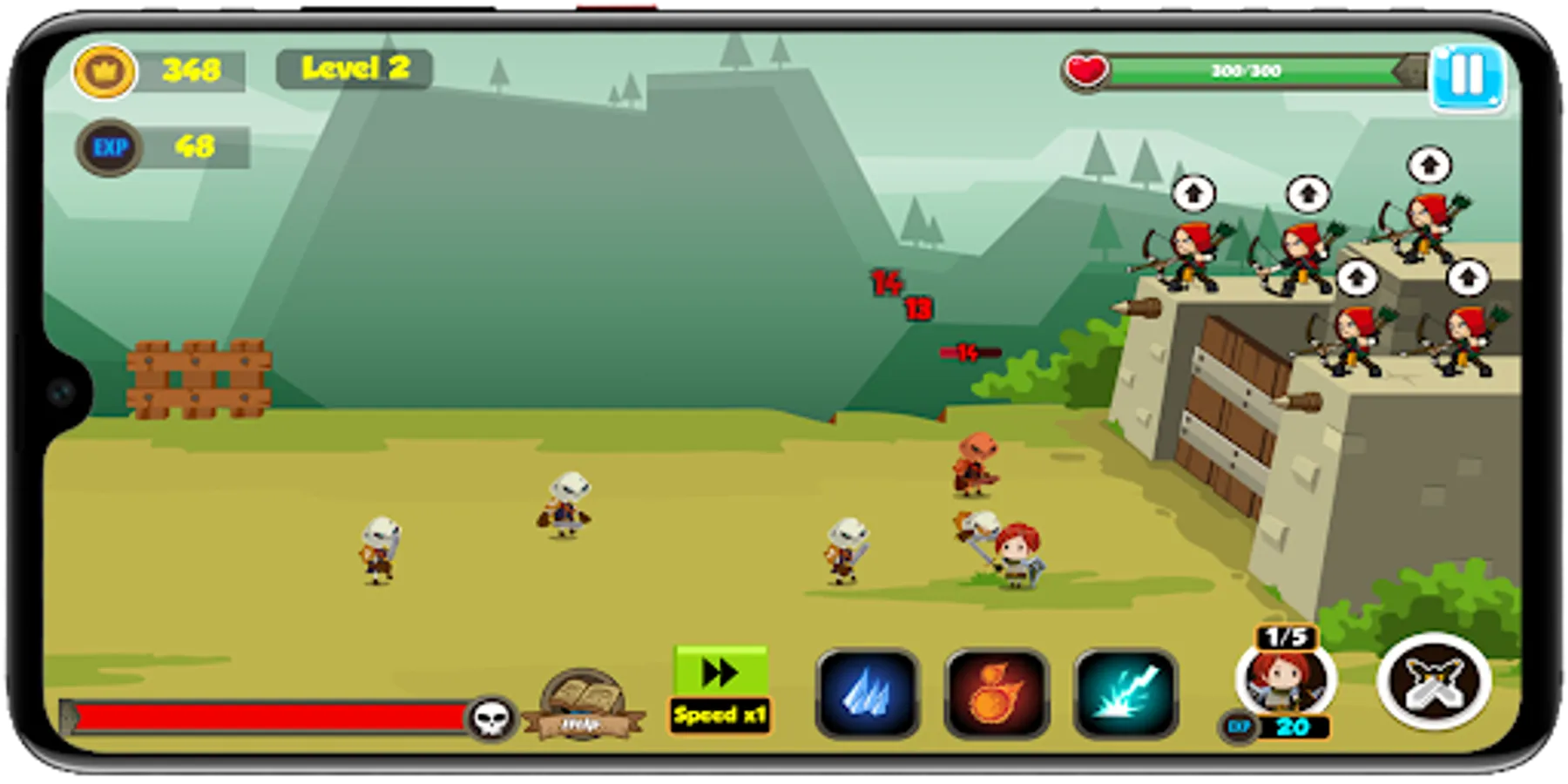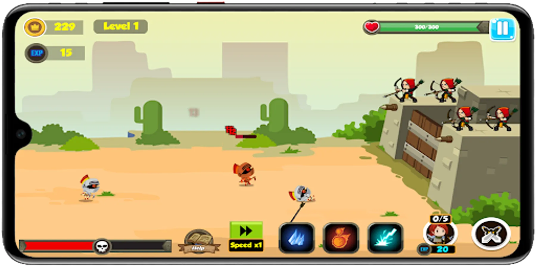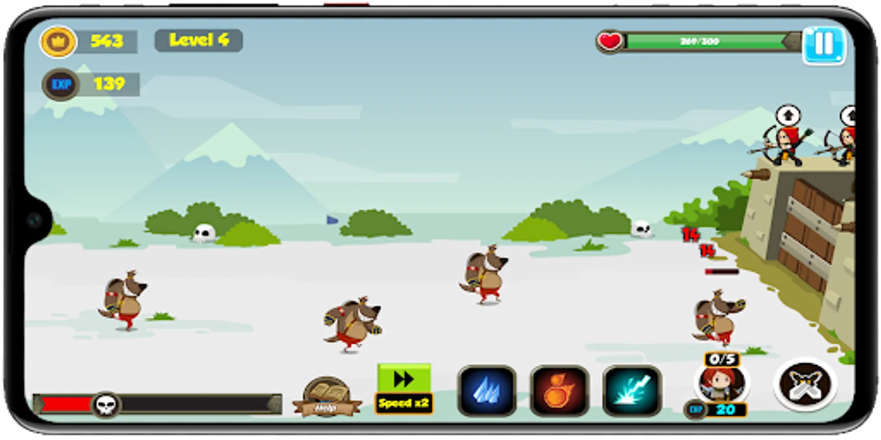 Hay muchas habilidades pasivas y activas para que elijas y uses. Puedes usar monedas para mejorar estas habilidades y mejorar a tus soldados para lidiar con enemigos más fuertes.