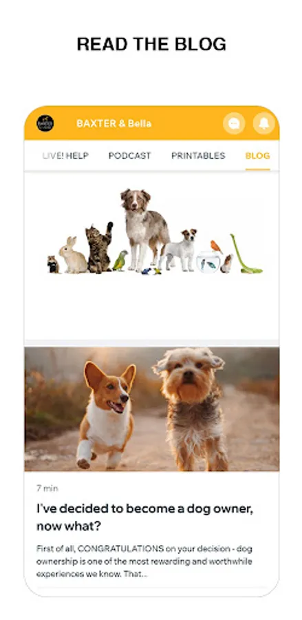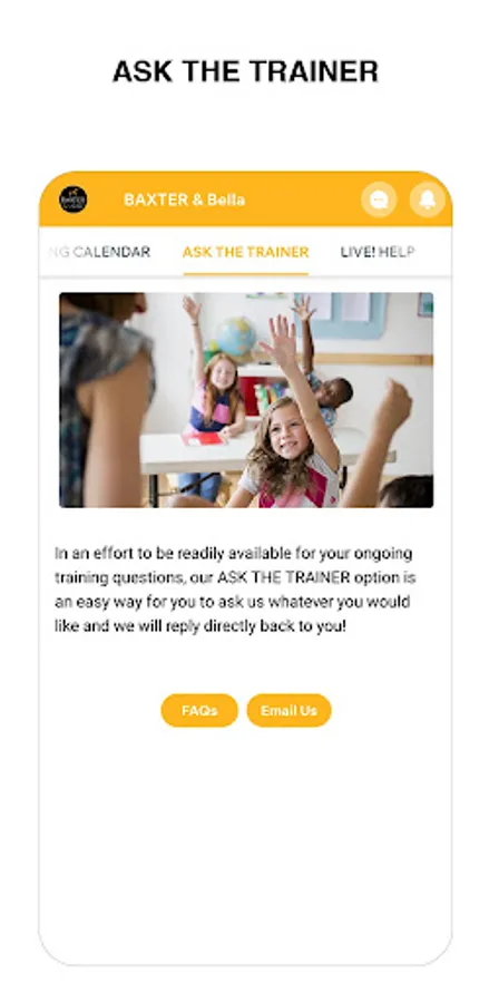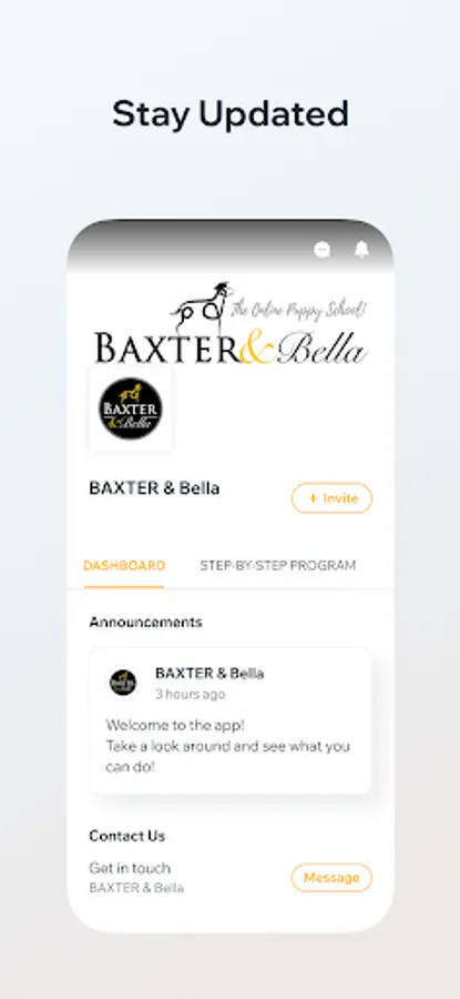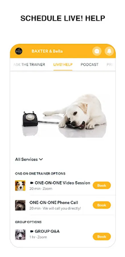 Thank you for your interest in our online BAXTER & Bella program, including our mobile app, which is strategically designed to bring our signature dog training resources to your fingertips like never before - please know we look forward to working with you and your dog soon!