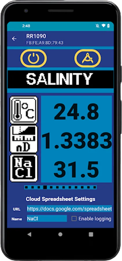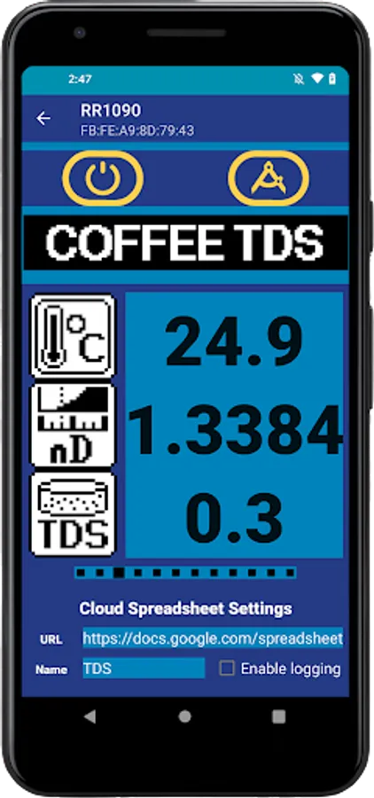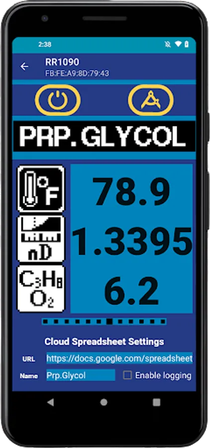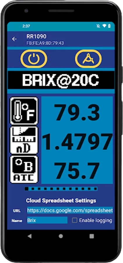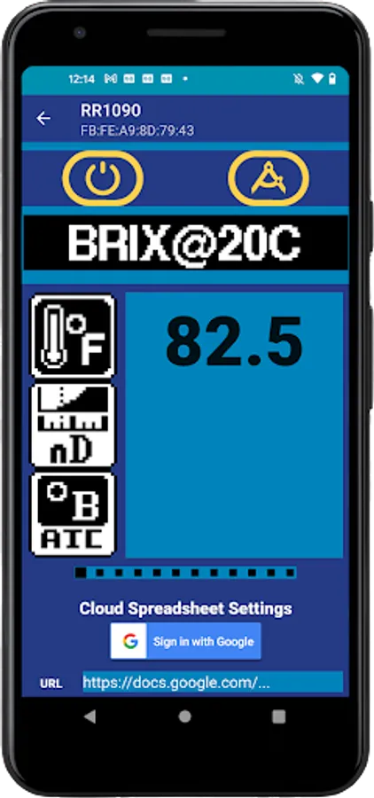 RRTool is the extended features companion app to your RR1090. It communicates via encrypted BLE with your RR1090 mirroring its buttons and providing extended functionalities such as: cloud spreadsheet logging, ATC for Brix, QR code generation and device firmware upgrades.