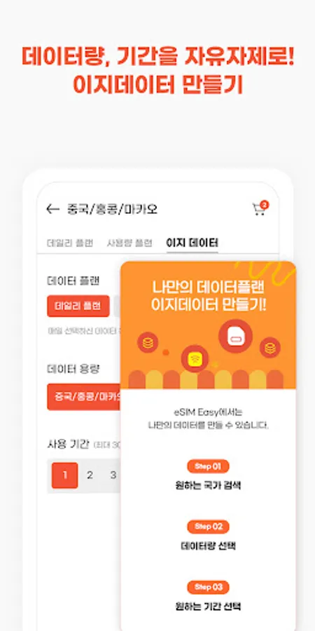 With Easy Data, you can create a data plan that suits you by selecting the desired period and amount of data.