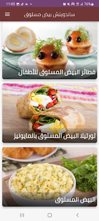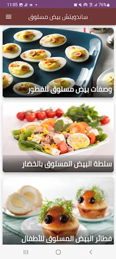 We welcome you to your application, Boiled Egg Sandwich. This unique application contains a set of delicious and easy-to-prepare recipes, which include boiled eggs as an essential ingredient and contain many vitamins that are beneficial to the body.