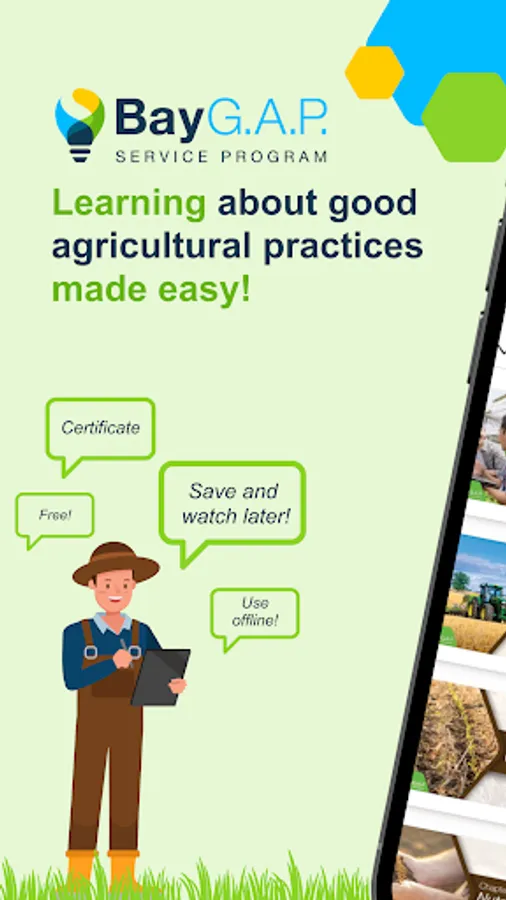 • Time is precious. While on the farm or on the go, BayG.A.P. is there for you, online and offline. Test or implement your knowledge constantly, because practicing good agriculture keeps our planet healthy.