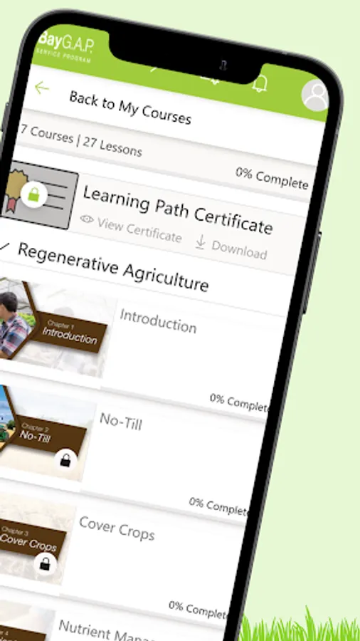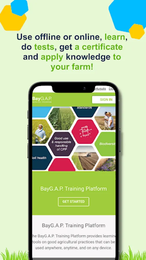 Designed by agronomists and improved by farmers like you, BayG.A.P. offers interactive, easy-to-digest training content, online or offline, and for free! Practice your knowledge after each chapter and see the results immediately after taking the exam.